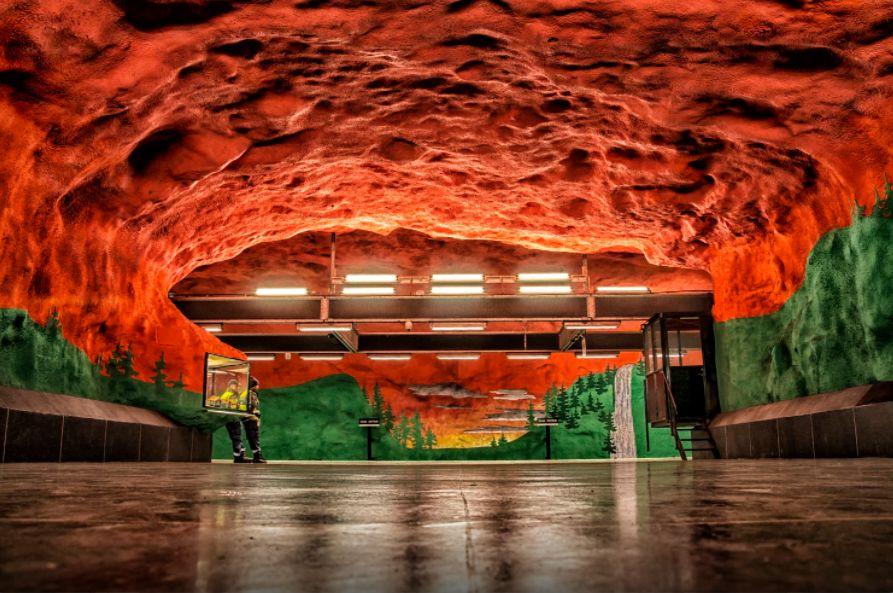 在斯德哥尔摩,你一定不会错过一座座流动的“地下美术馆”。在100个地铁站里,其中47个位于地下,而它们正是令人倍感兴趣的地方。来自世界各地的艺术家以雕塑、绘画、马赛克、浮雕和装置艺术等形式将斯德哥尔摩的地铁幻化成世界上最长的艺术画廊。