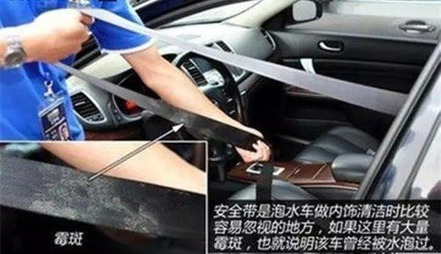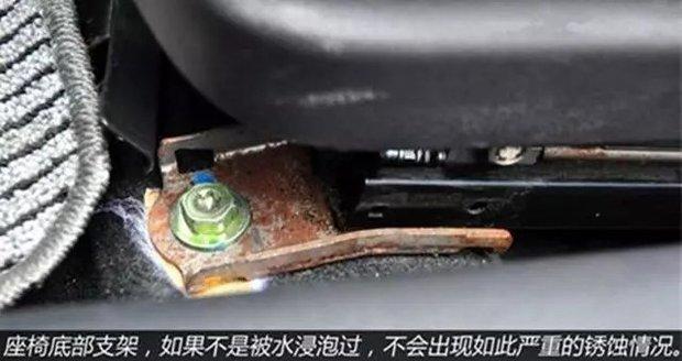 此外,车内的很多处细节,包括座椅底部、安全带、中控液晶屏、音响网格等地方,是否有异常,都是鉴定泡水车很有用且车商难以修复和容易忽视的地方。