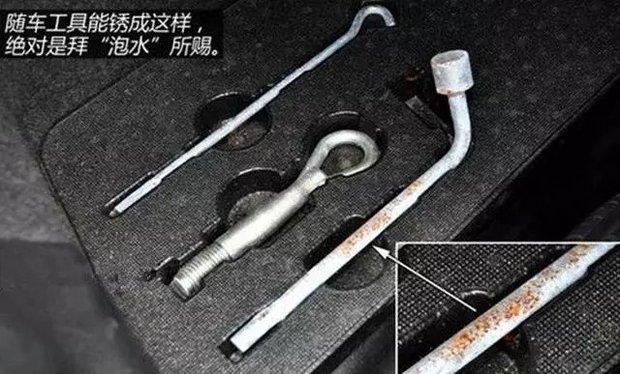 后备箱作为泡水后积水的重灾区,也是鉴定一辆车是否泡过水的重要依据点。其中后备箱胶条、边角及备胎槽、内衬缝隙、备胎等部位的细节处,是否有生锈以及变味,只要细细观察都能发现。此外,还有一个容易被忽略的地方,就是随车工具箱,里面的工具也是车商容易忘记换的地方。