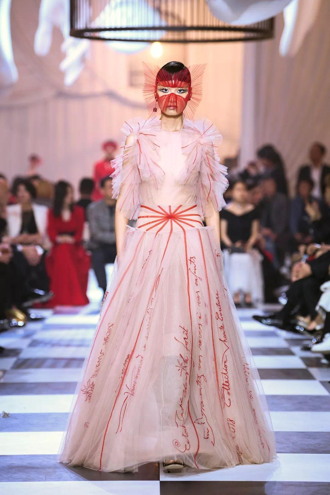 本季高级订制系列以超现实主义为主题,于一月在巴黎罗丹美术馆发布。为庆祝与中国的深厚情缘,Dior女装创意总监Maria Grazia Chiuri以扇子的雅致造型为灵感,倾情设计了十二款全新佳作,为致敬中国。