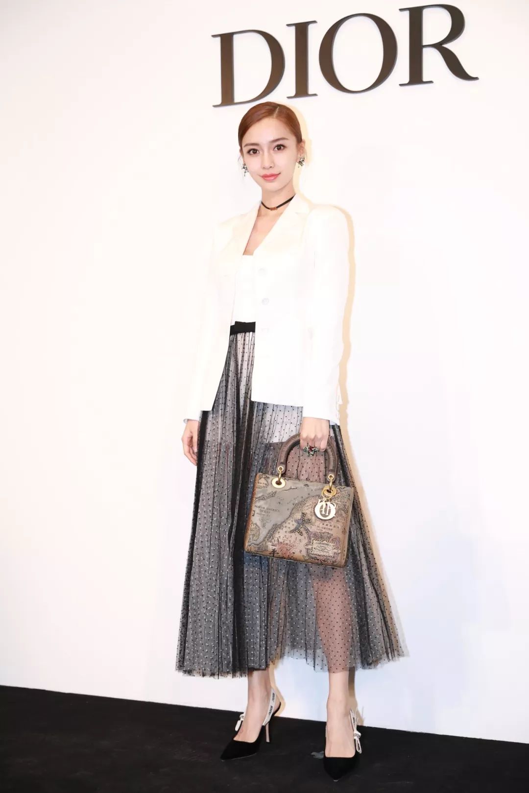 出席迪奥 Dior Lady Art #2——艺术家限量合作系列揭幕酒会,Baby首穿2018春夏系列黑纱裙外搭白色西装套装,搭配以经典choker演绎独特的现代女性摩登气质,优雅而迷人。