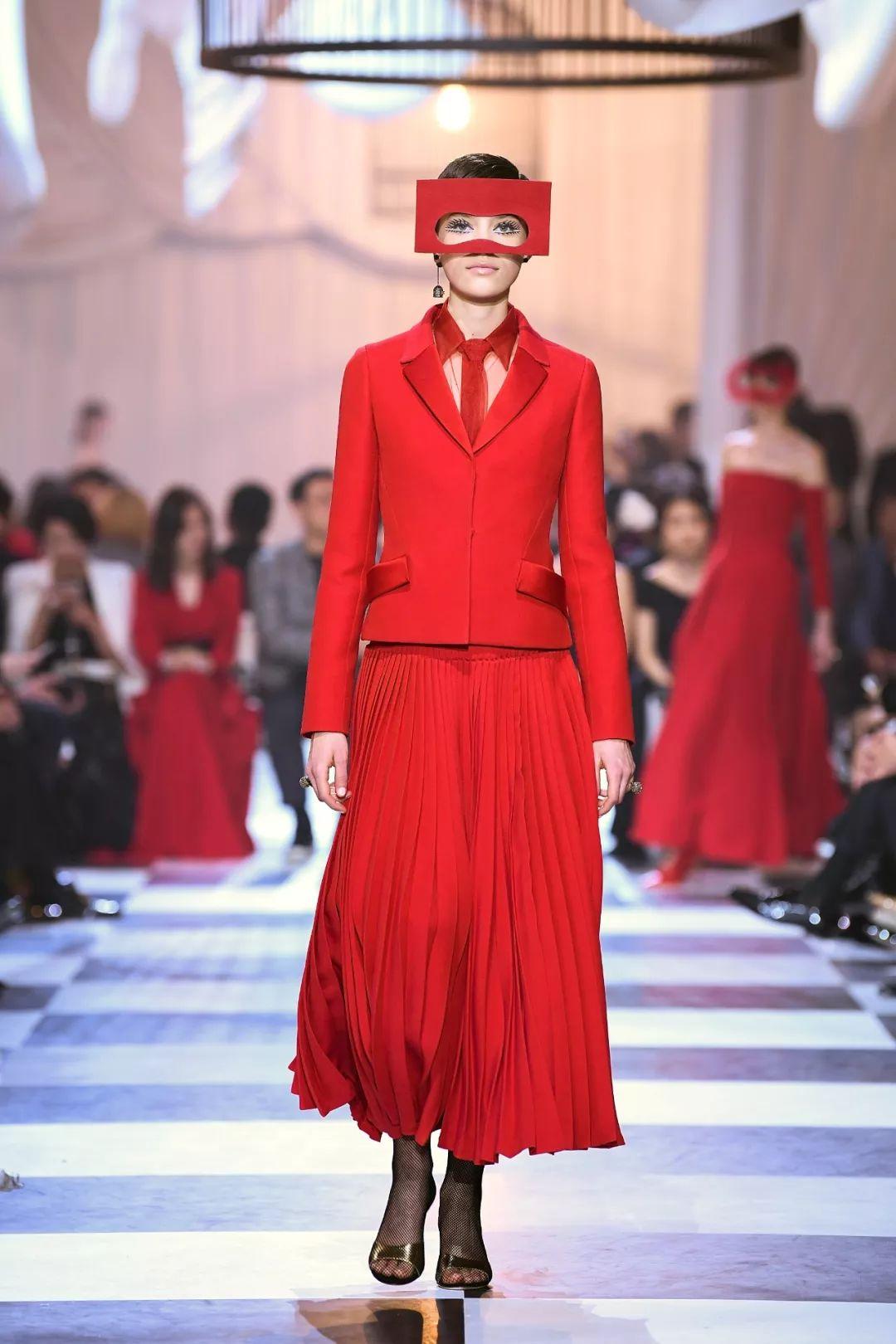 Maria Grazia Chiuri还将红色选为多款新作的主色调。红色不仅是幸福与幸运的象征,更是时装设计大师兼品牌创始人Dior先生心爱的色彩之一。