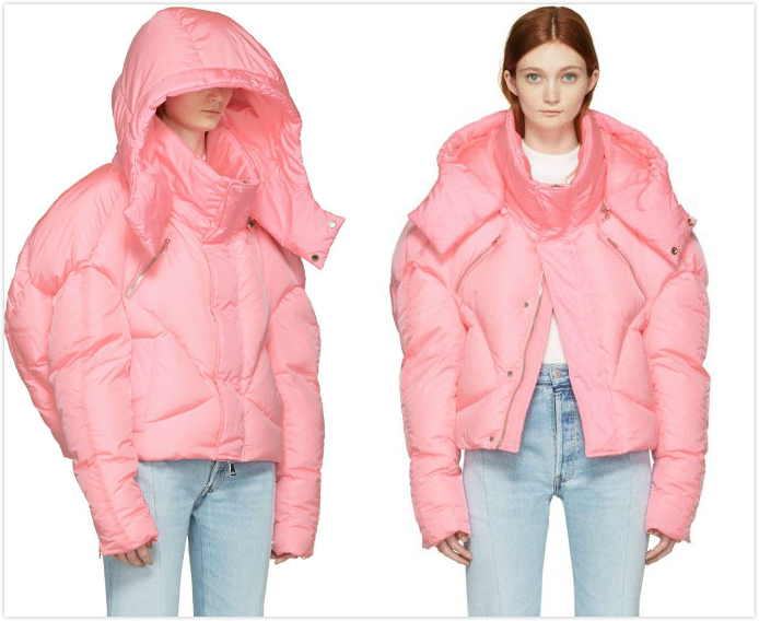 被这件Marques Almeida鲜艳桃粉色,奇怪造型的羽绒服打败了。就嗜好“棉被”。味道特殊啊。