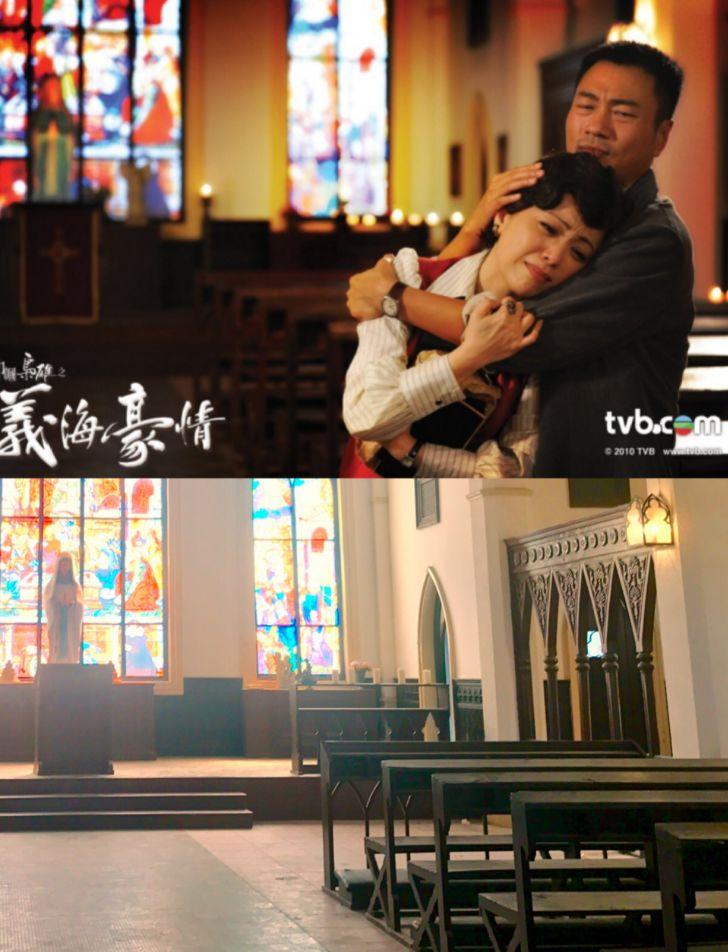 来到一间为了外景拍摄而搭造的小型欧式教堂,看上去和真正的教堂别无二致,只不过玻璃用彩纸代替。“《巾帼英雄之义海豪情》在教堂的戏,就是在这取的景。”TVB的工作人员对每经影视记者说。