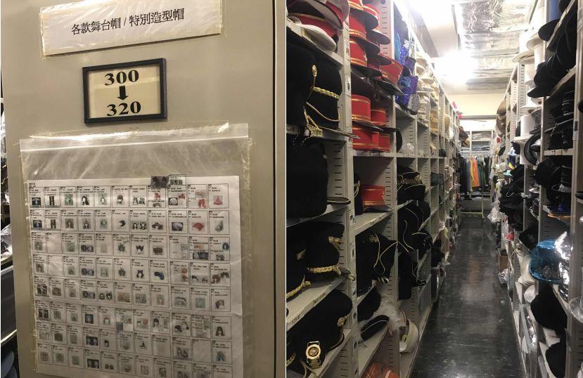 TVB电视大楼里整齐分类的造型帽仓库(图/每经影视记者 丁舟洋 摄)