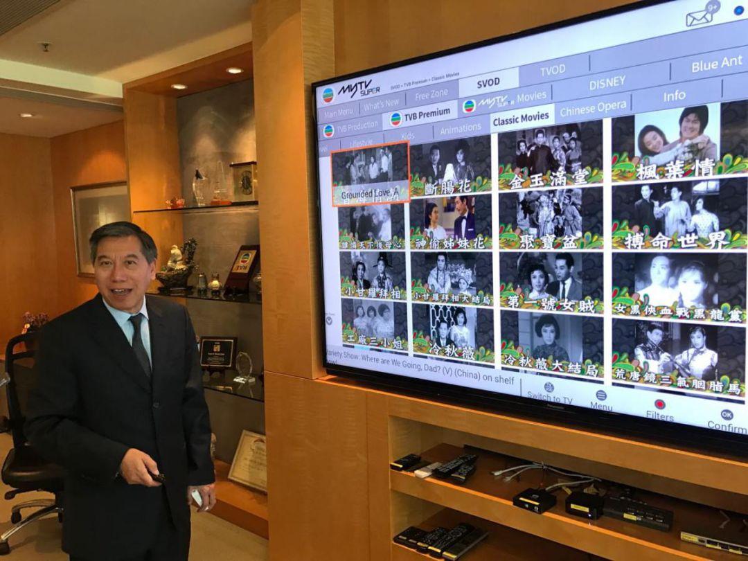 李宝安向每经影视记者展示myTVsuper经典电影一栏,收录了所有香港地区黑白电影总共1500多套。(图/每经影视记者 丁舟洋摄)