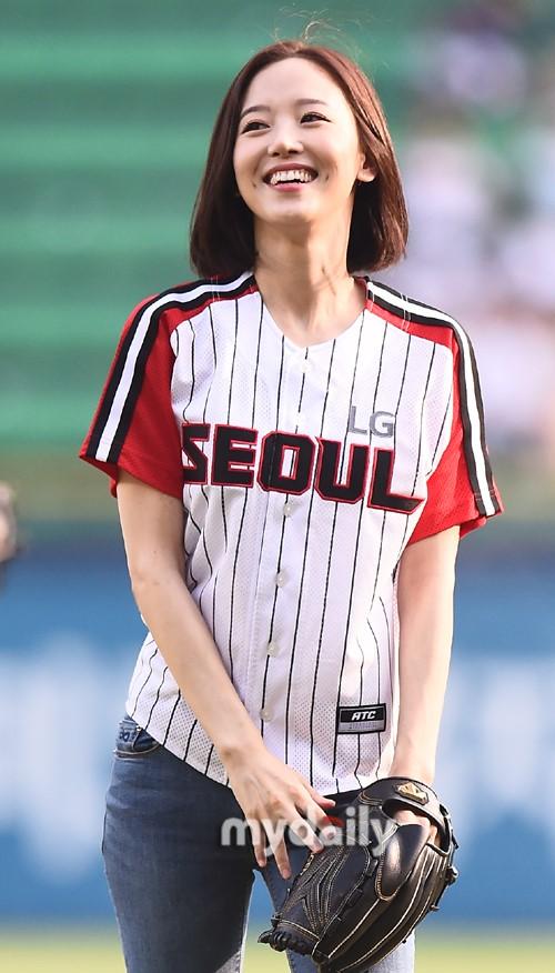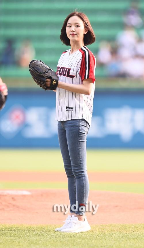 7月22日下午,韩国女艺人 姜汉娜在首尔蚕室棒球场担任了职业棒球比赛的开球嘉宾。