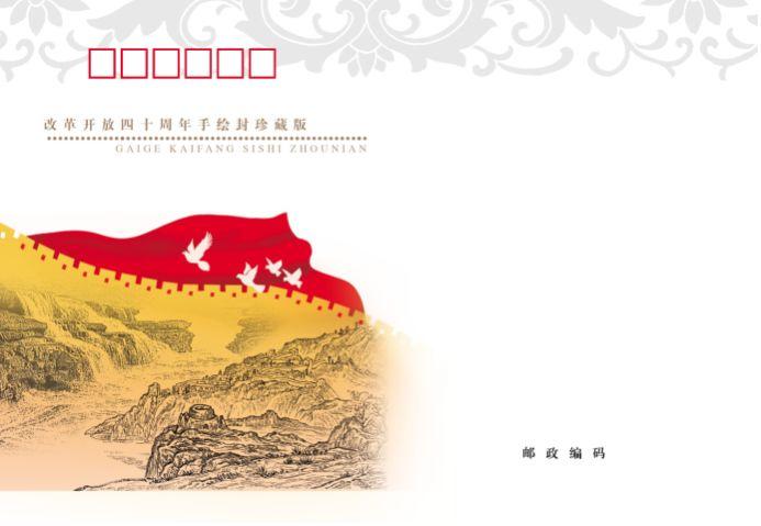 邮品亮点:改革开放40年,我们参考邮册的分册方式,开发十枚一套的邮折。配特殊版个性化邮票一版及手绘封一枚。同时,外插套采用创新的包装形式,既可收藏也可摆放于书桌上,增加了功能性。