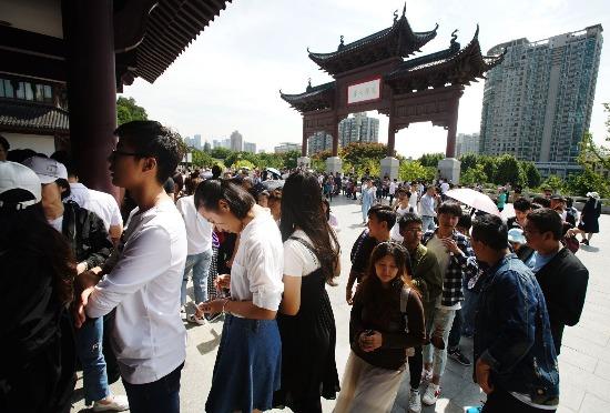 武汉地标楚河汉街人气再次刷新。据汉街人士初步统计,十一期间,人流量最高的一天达到了21万人次,破了开街纪录。这几天,汉街上,“人挤人”成常态。新开张的小米旗舰店因为流量过大,采取了限流措施,店外排着大量等候的市民。