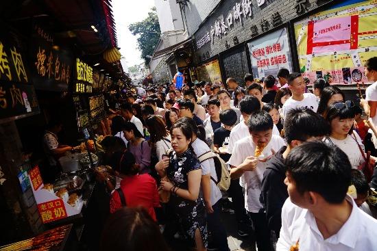 图为国庆黄金周期间,武昌户部巷人头攒动人气爆棚。记者何晓刚 摄