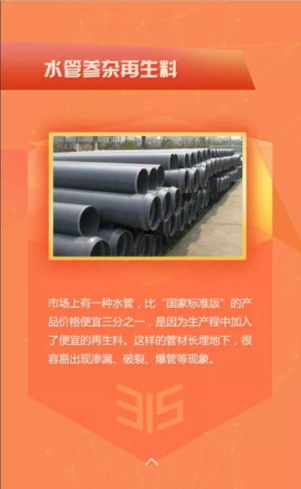 央视记者发现,市场上有一种水管,比“国家标准版”的产品价格便宜三分之一,是因为生产程中加入了便宜的再生料。有业内人士表示,好多再生料是用洋垃圾做的。