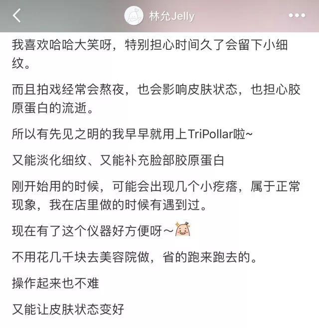 林允自己之前也会去美容院做射频护理,现在基本靠美容仪代劳了。