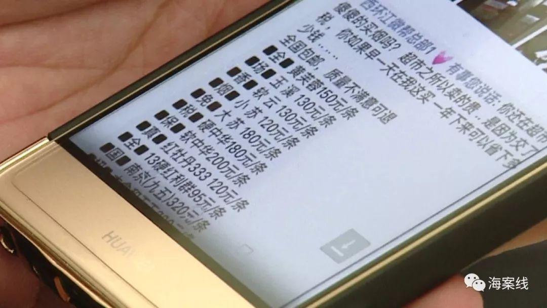 2017年4月,在河池市环江毛南族自治县有一伙人经常利用微信平台,大肆向朋友圈推销各种档次的香烟。号称这些香烟是“出口转内销”、“原厂免税”、“口感顶级”,最关键的是价格还十分便宜。为了让人相信这些烟是千真万确的原厂烟,微信里还有“荧光防伪”的视频。