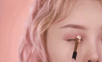 首先选则橘粉色/橘红色系哑光眼影打底,大面积晕染眼周,可以使用打圈式晕染手法,使眼周呈现浅粉红色即可。