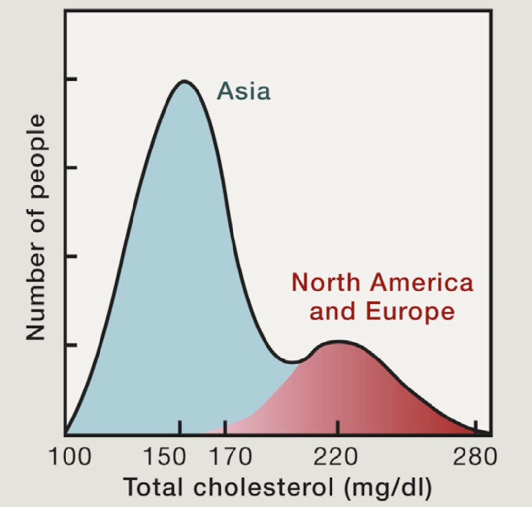 实际上,早就有研究表明,包括灵长类动物在内的其他成年动物的血浆LDL-C水平是60mg/dl[12,13],而现在人类在婴儿血浆的LDL-C水平也低于50mg/dl[14]。LDL-C水平超过100mg/dl的现象也只能在成人,以及被喂食西式饮食的动物体内发现[11]。