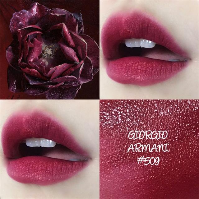 这支509是阿玛尼400系列中很独特的一支,冷门色中的黑马,薄涂是玫红色,厚涂紫色调会多一些,且带有金色细闪,显色度饱和度满分,涂上就是自带仙气的女生,想显白买它没错了!