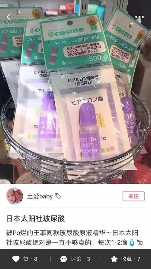 这款小紫盖的玻尿酸也是非常的火了!大家都知道玻尿酸又称透明质酸,我们的皮肤分为表皮和真皮,透明质酸就是真皮中含量最多的基质之一,若真皮基质中的透明质酸减少,会导致含水量下降,进而导致皮肤干燥、无光泽、弹性降低、皱纹。