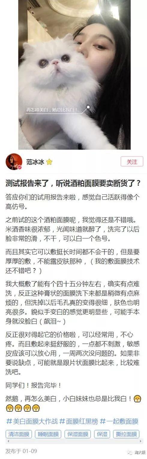 如果说杨幂是服装届的带货女王,那范爷就是美妆届的“网红冰”!让这款pdc酒粕面膜自从冰冰推荐之后,销量猛增,几乎卖断了货!