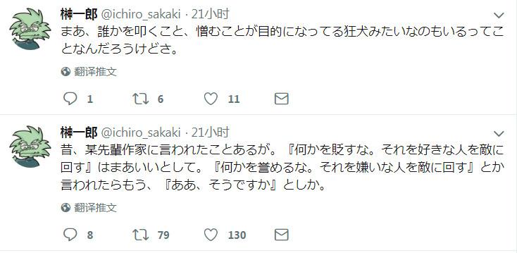 轻小说作家榊一郎说,曾经有前辈作家教导他:“不要批评任何东西,因为那样会得罪喜欢那东西的人。”这也就罢了,那前辈甚至还说:“不要称赞任何东西,因为那样会得罪讨厌那东西的人。”他听了,无言以对。