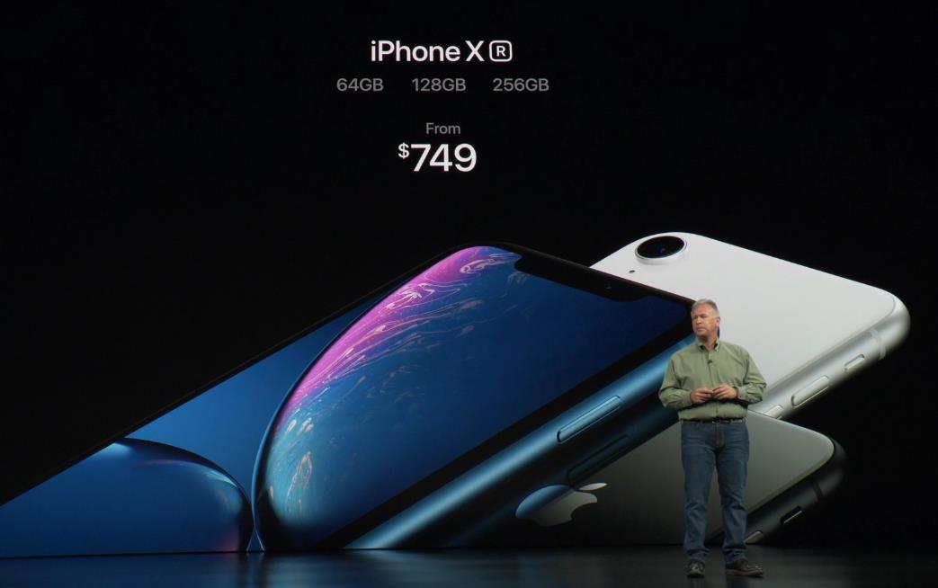 第三款,iPhone XR,64GB、128GB和256GB三种内存版本,售价自749美元起(国行版售价6499元起),10月19日开始预订,10月26日发货。
