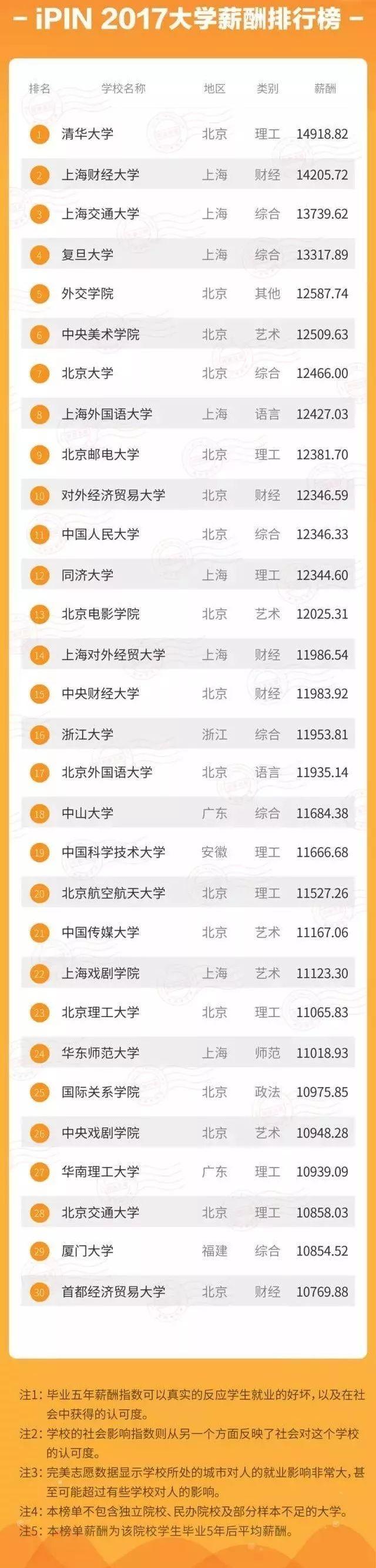 中国一流高校毕业生的薪资水平,