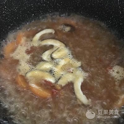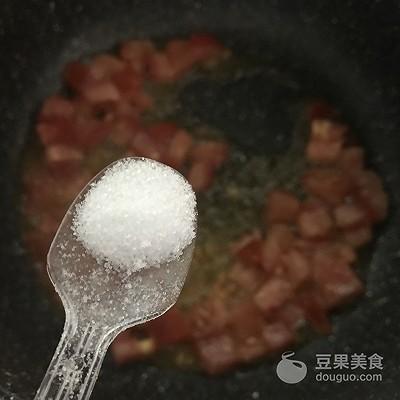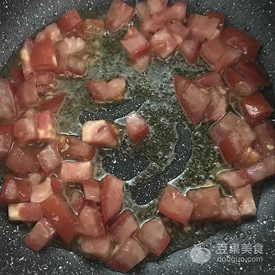 7、番茄丁倒入翻炒。