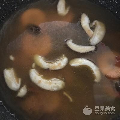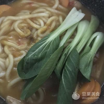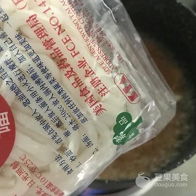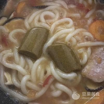 13、加入乌冬面和煎好的午餐肉。调中火煮5分钟。