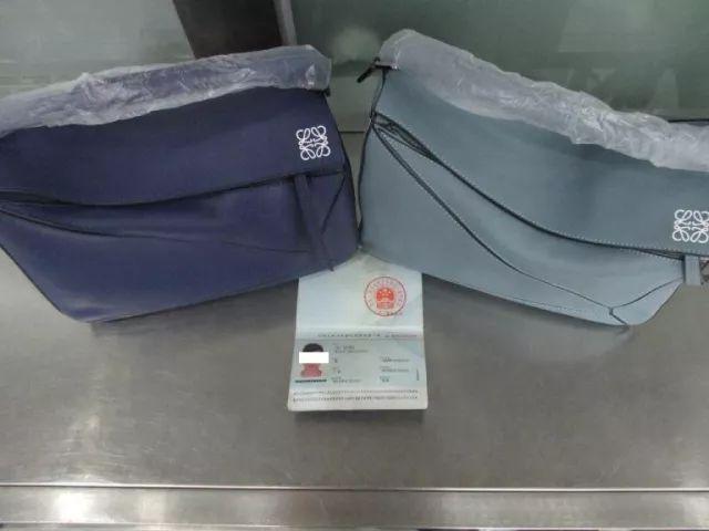 3 内地旅客携带的假LOEWE女士皮包2个。旅客自述该皮包为在网上购买的盗版商品。