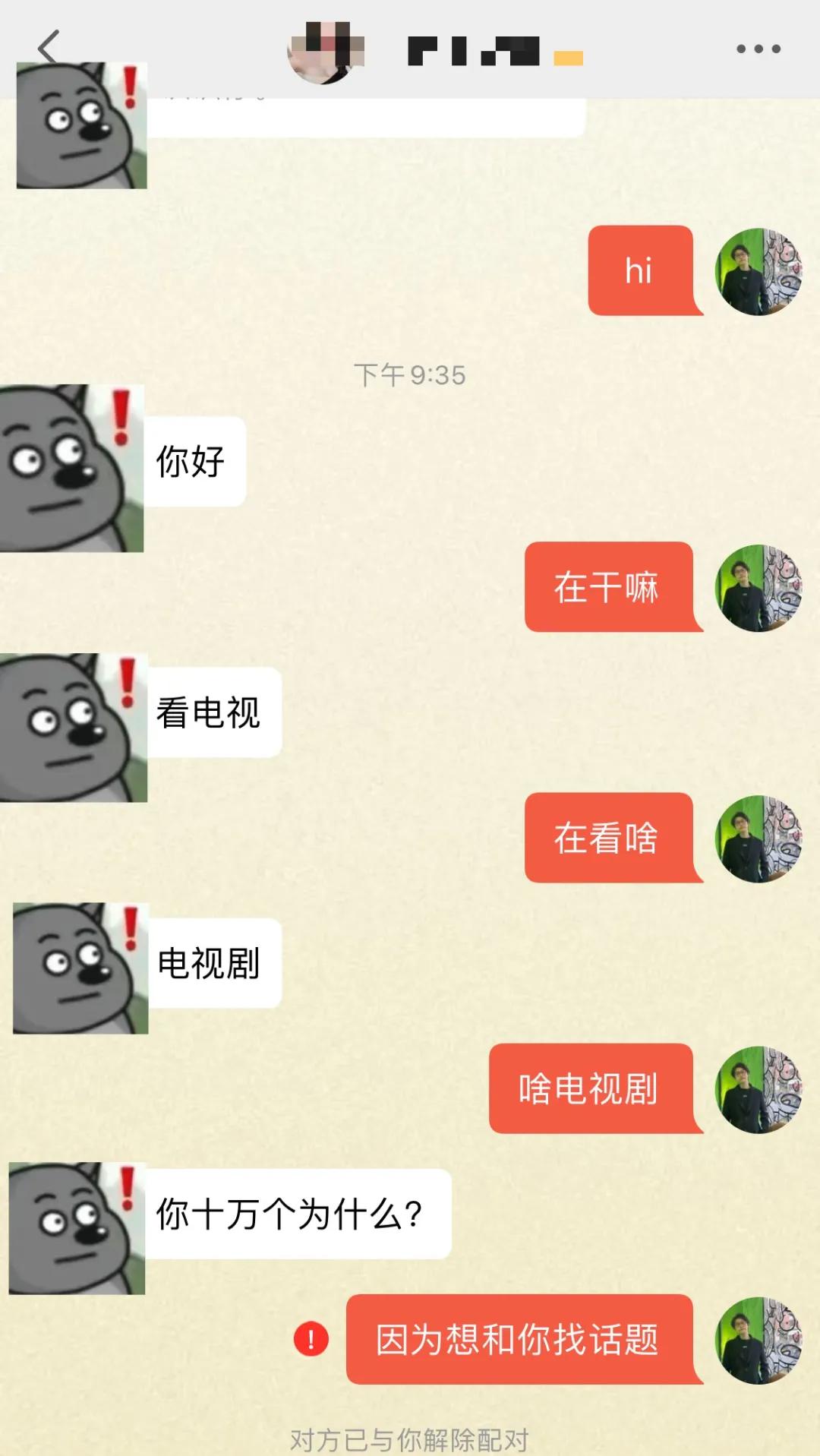 你吊儿郎当的聊天,一样聊几句就被拉黑了: