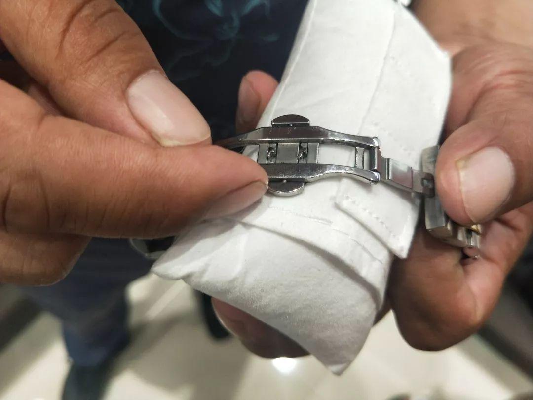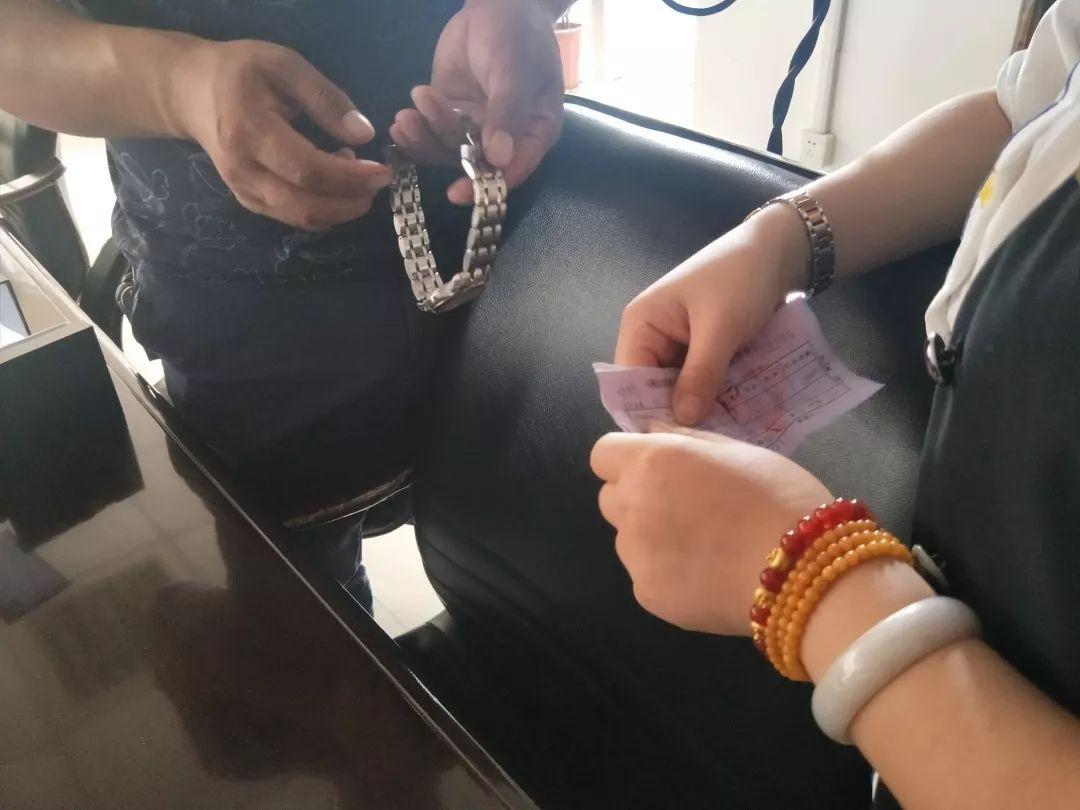 宋先生拿出手表给工作人员检查