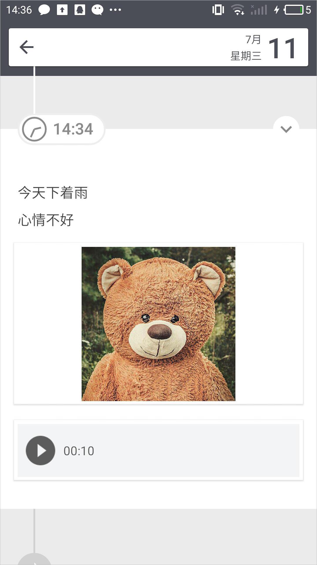 针对于每天的日记,可以看到在一条时间线上完整呈现,能够预览到日历的全部内容。