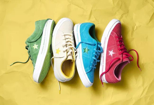 此前的小花联名 Golf le Fleur x Converse 人气非常不错,Converse 又推出了平民版 One Star,几乎相同的绿、粉、蓝、浅黄四种颜色,再加上非常不错的价格,还能再要求什么呢?