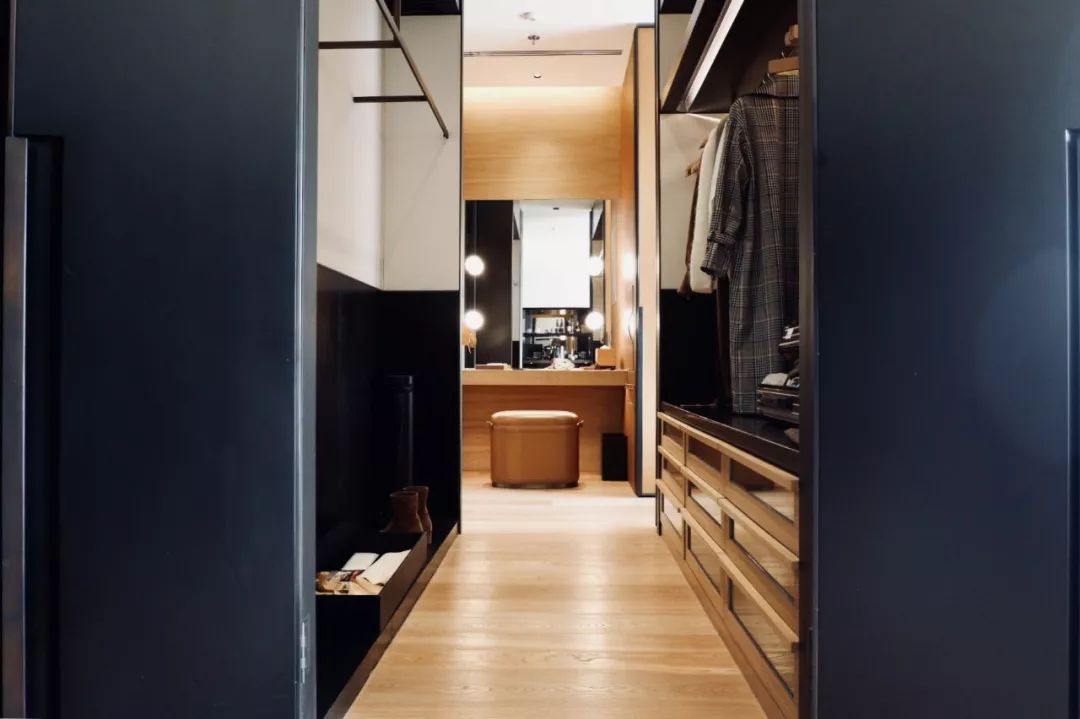 一旁的化妆桌则更吸睛,柔和巧思的灯光设计完全满足了女生每日的妆发需求。