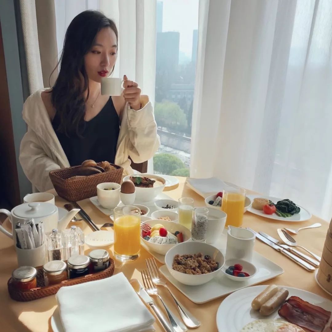 纽约套餐、北京套餐,宝格丽套餐、健康套餐、罗马套餐……洁白的餐车带着满桌的新鲜食材推进房间,一会儿在洒进阳光的窗边享用,一会儿又赖在床上回味,这才真正叫享受早餐!