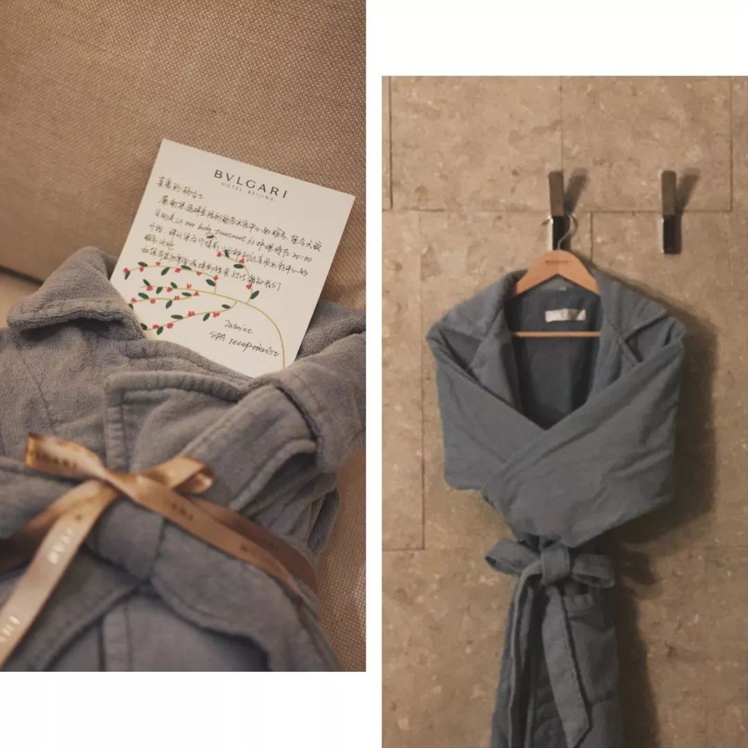 惊喜三:做SPA前,干净的浴袍都会像礼物一样被送到房间,并提醒做SPA的注意事项。
