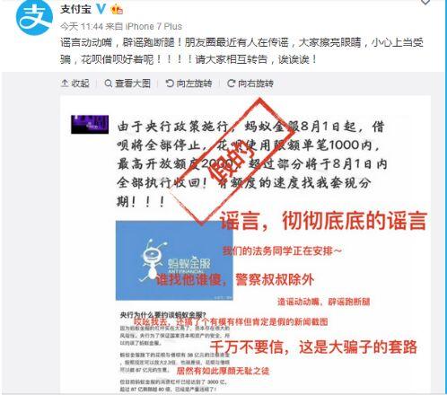 最近,网上流传出这样一则消息称,自8月1日起,借呗将全部停止,花呗的使用限额单笔在1000元内,最高也仅开放2000元额度。对此,支付宝在官方微博发表了辟谣微博,证实这则消息为谣言,借呗、花呗并没有停止服务,也没有对消费额度进行变更。