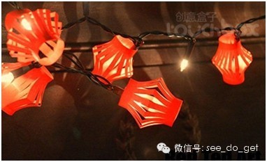 将做好的纸灯笼套在小串灯上,气氛立刻不一样了
