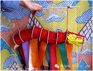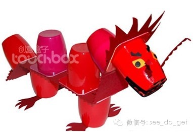 这条龙是用一次性纸杯做成的,身体还可以高低起伏呢