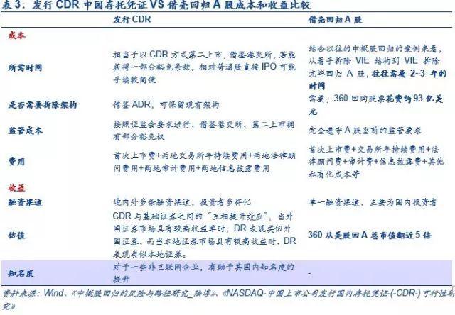 CDR和中概股借壳回归相比在时间、成本、保留架构等方面优势明显