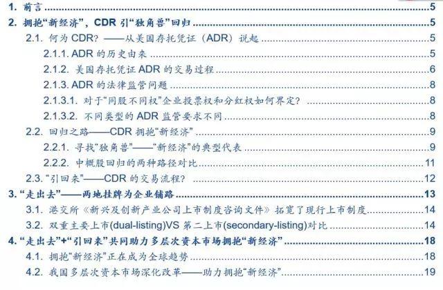 借鉴美国存托凭证(ADR)以及全球各类存托凭证(DR),国内提出的CDR其实早已经是一种比较成熟的模式,只是各国面临的实际情况和法律法规不同,具体实施还有待探讨。CDR的发行或将构成我国多层次资本市场建设重要的一环,拥抱“新经济”,不仅要接纳“独角兽”回归,也要鼓励企业“走出去”,港交所今年以来公布的框架咨询意见值得深思,本文通过详细案例分析来探讨我国多层次资本市场的建设构架。