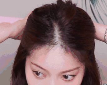 最后脸颊两侧刘海部分的头发可以再用直板夹垫一下发根,轻轻的带过让前额的刘海弧度过度的更自然,发根增高整体的造型感更强。