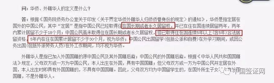 中国国务院侨务办公室给出的关于在国外“定居”的解释是: