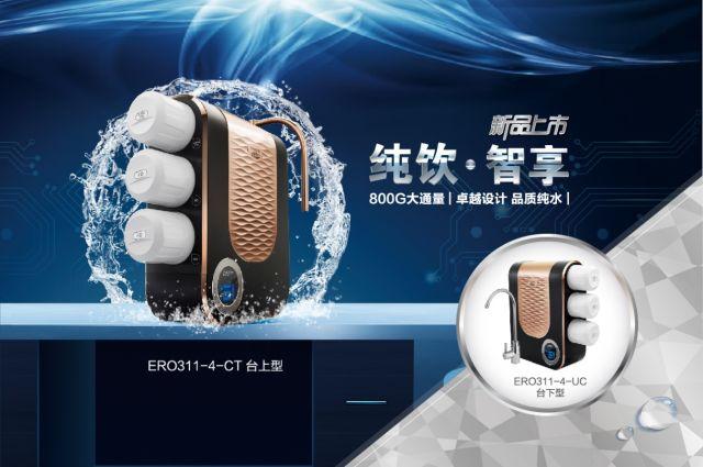 新品纯饮智享系列ERO311-4-CT/UC采用的是优越的人机交流设计。高颜值硬朗简洁的造型,摒弃了传统纯水机水罐设计,采用金属线条外型奢华大气,表面浮雕纹理精致优雅;无桶设计,有效节省安装空间;台上台下两款型号可根据空间条件自由安装;超大LED智能屏,实时监控每根滤芯寿命,滤芯状态一目了然,畅享净智生活。