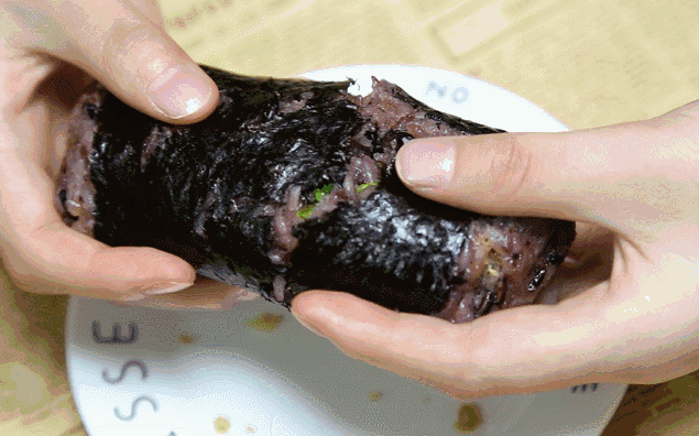 所有饭团里口感最惊艳的一款,任谁都没想到它有这么好吃!烤鸭肉片经过腌制处理,自身就非常入味,再淋上浓郁的黑胡椒酱,微微的辣感非常够味儿!