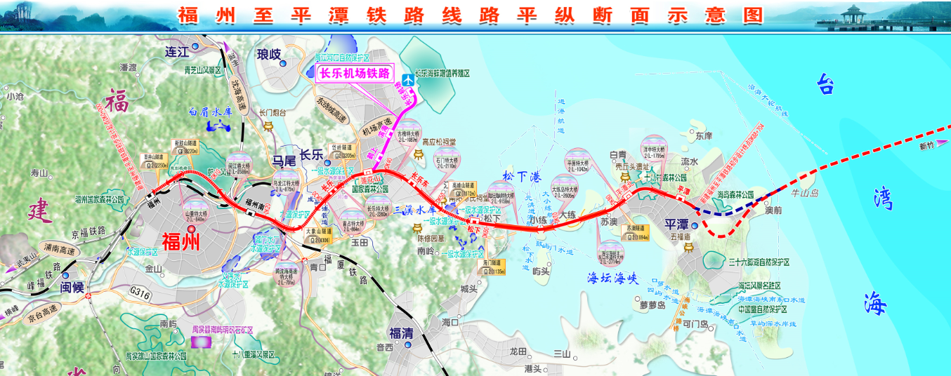 铁四院福平铁路项目总体设计负责人徐科介绍:“平潭岛是我国大陆离台湾最近的岛屿,岛上开通高铁,必然是离台湾最近的高铁,这是形成京台铁路通道、密切海峡两岸交流合作的需要,也是开发平潭综合实验区、推进海峡西岸经济区建设的需要。”项目于2013年11月动工建设,计划2019年5月建成通车。