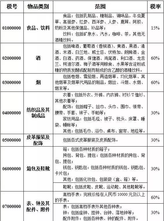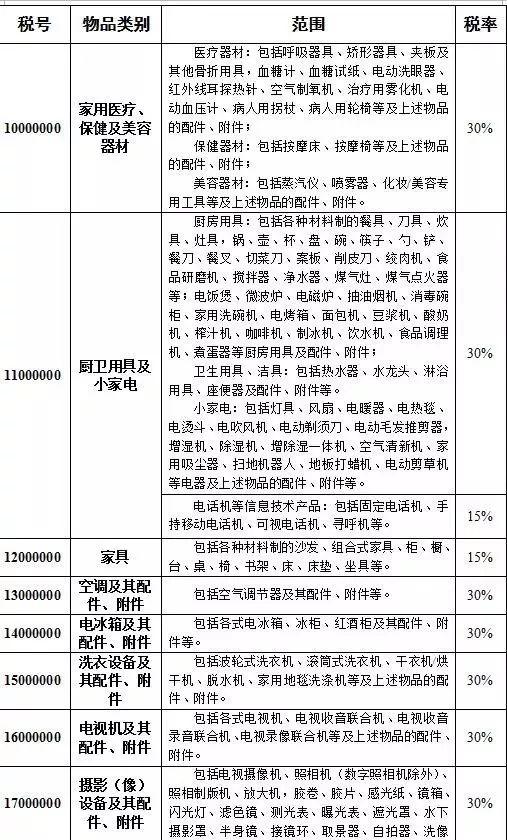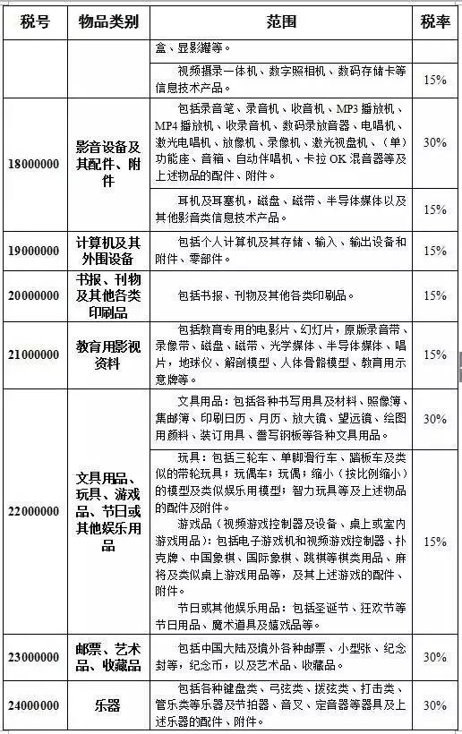 其中,食品饮料类税率是15%