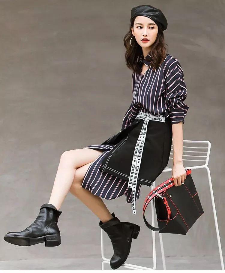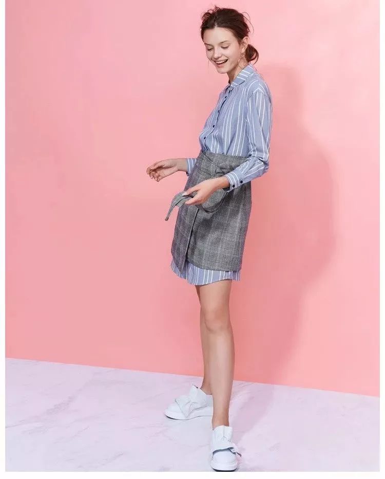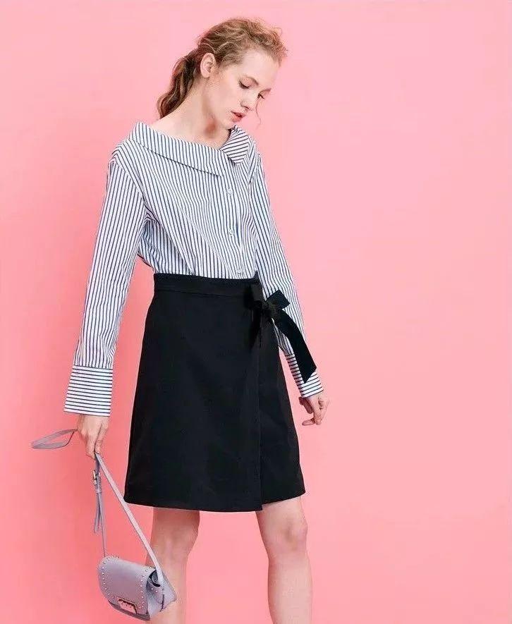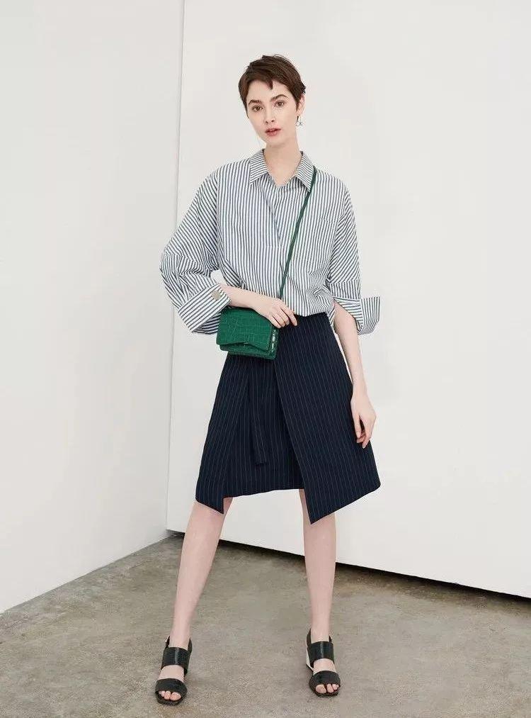 条纹衬衫搭配裙子