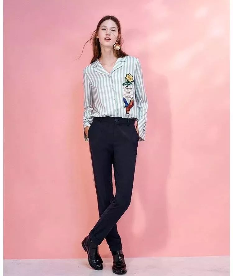 可以说任何裤子都能搭配条纹衬衫了。当然你得选着颜色和设计都简洁点的,要是彩虹条纹衬衫就不见得每条裤子都能搭配了。