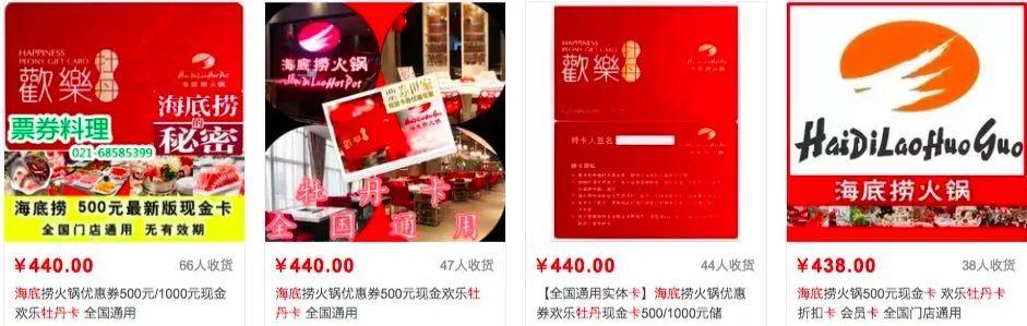 海底捞牡丹卡:现在淘宝上有海底捞的牡丹卡卖,面值500元,售价440元左右,相对于打9折,这个现金卡是可以和各种优惠券叠加的,买单的时候直接刷这个卡付款就可以了,这个卡有没有使用次数和时间限制。如果经常吃海底捞,可以入手这种牡丹卡,性价比很高。