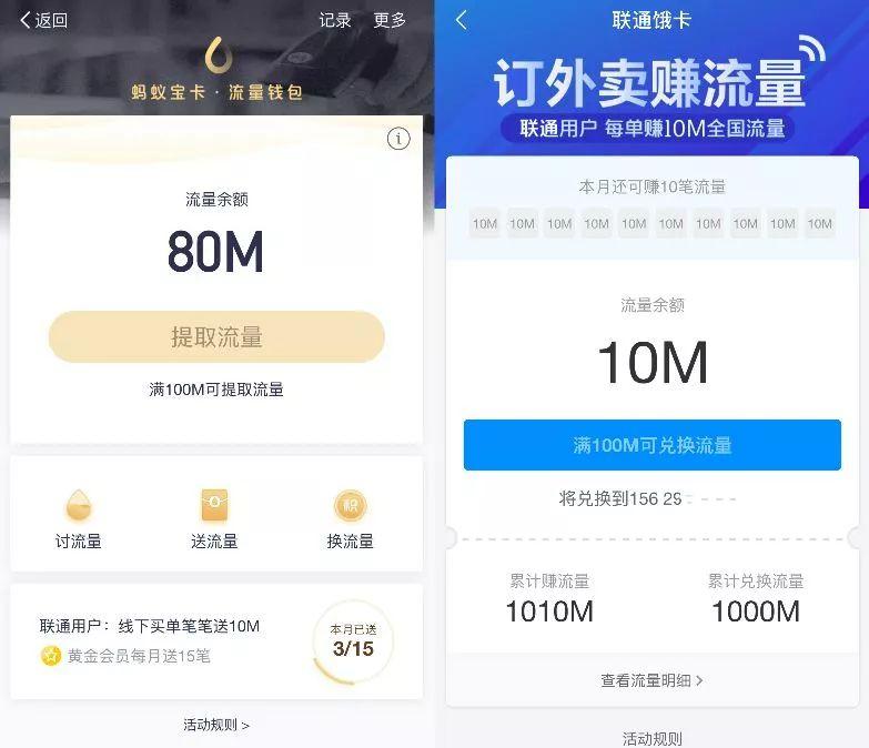 因为我是联通用户,经常使用饿了么和支付宝,每个月都在支付宝和饿了么兑换免费的联通流量。